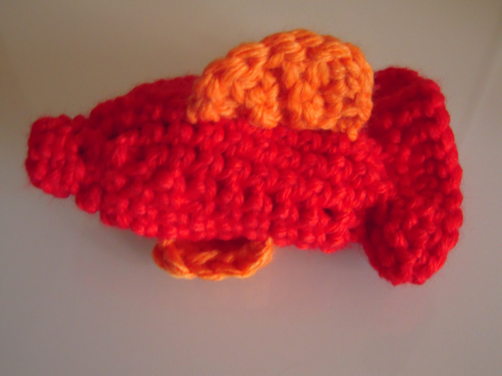 Är det en guldfisk? Är det en vante? Det är en guldfisk-vante! Den sista bilden visar hur vanten ser ut underifrån och tummen är en av fenorna. Även här gjorde jag en anordning för att kunna dra åt vanten i handleden, och framför allt för att fiskstjärten skulle se ut mer som en fiskstjärt!